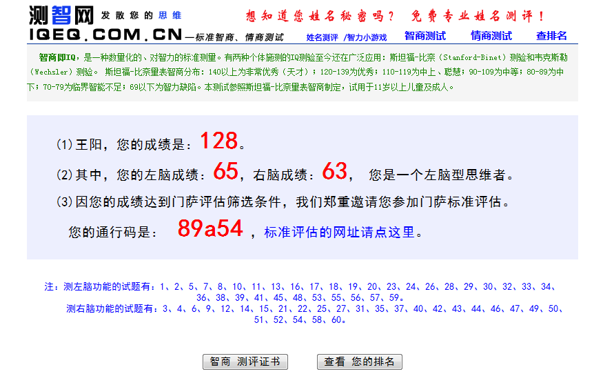 前阵子测了40分钟20题比较夸张,才发现还不是标准测试,今天花45分钟测60题,我咋发现我这智商优势平时咋没体现呢?!